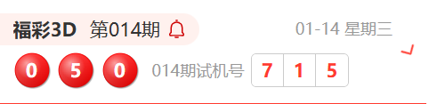 福彩3D第014期开奖结果为:050
