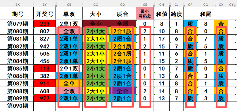 2,目前开奖号十位号码球11天当中,质数(12357)开出了5次,合数(04689)开出了6次,本期重点关注开奖号十位号码球质数的回补!