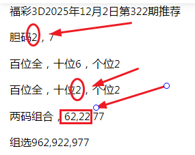 福彩3D第322期中十位2,中两个两码组合