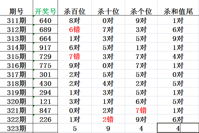 杀定位,杀和值尾,上期杀十位错误