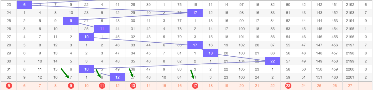 本期看好 范围5-23 之间定和值9-11-13-17从图上来看近5期的和值 17 18 22 10 12 22 10 为1路和值 18 12 0路和值 17 2路和值 本期看好2路和值参考 这五期和值波动不大 下期防守大波动