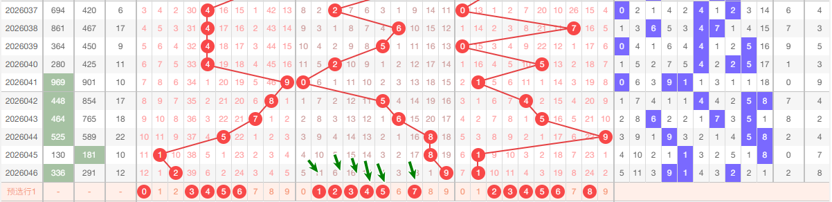 最近的5期当中十位大数出现的频次5次 小数出现0次 ,趋势平和 本期看好走小