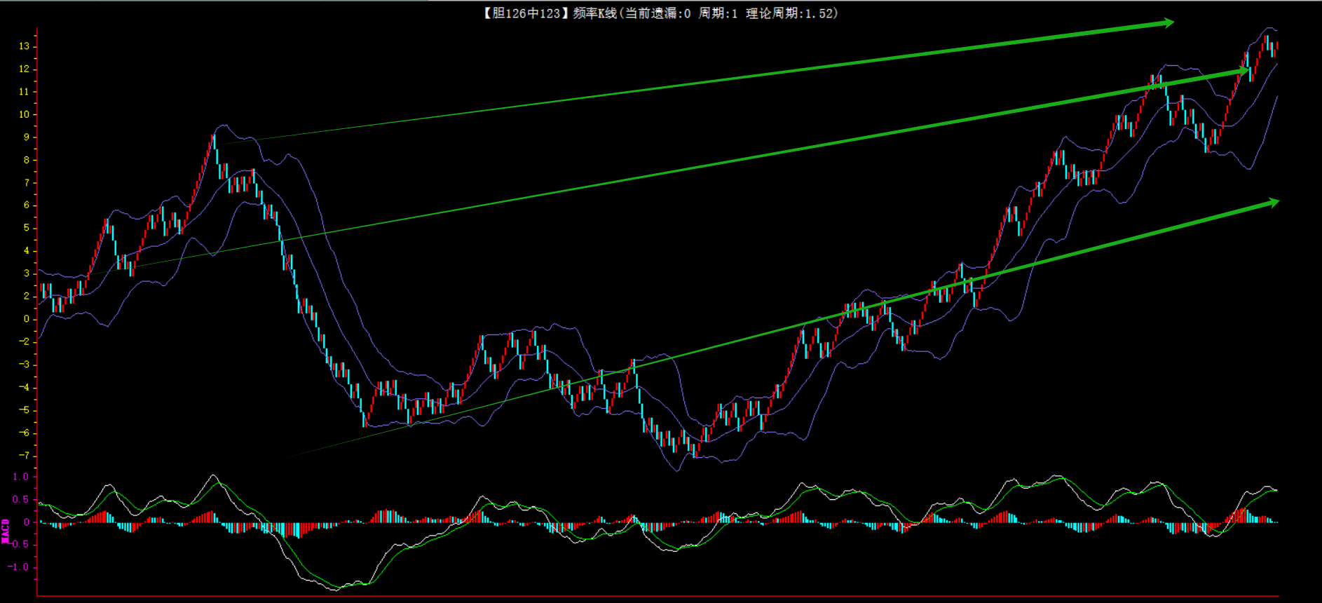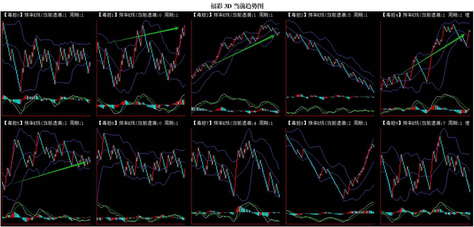 整体趋势上行,上边沿线趋势向上,下边沿趋势也是向上,节点震荡,当前遗漏1期,本期关注。