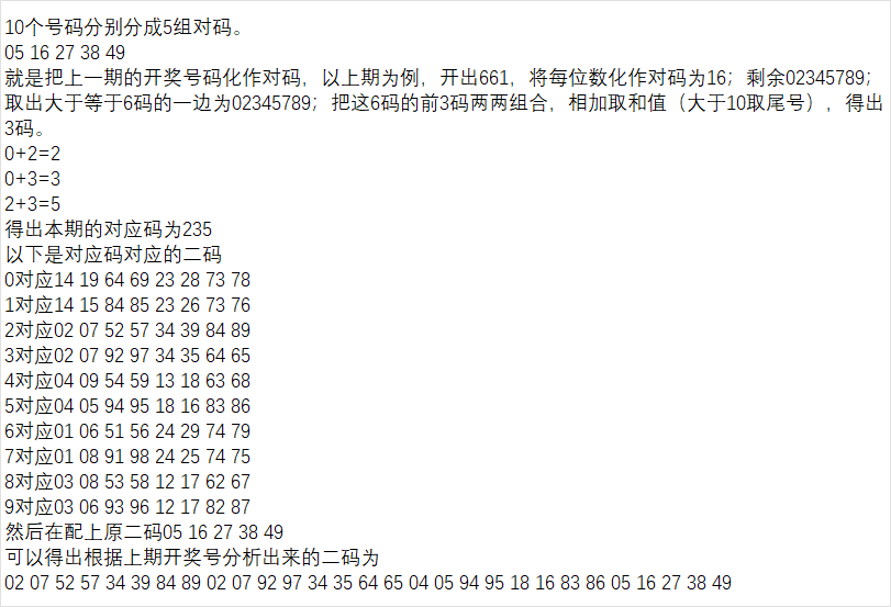 449和5,2,6,4,8,6,6,9,2的同码为49。这个有个细节要注意,如果同码只有1个号,我们可以用这个号的相邻号码中选取比较热的一个号码来补全,组合成2码,再取这个两个号码的对码来组成4码的胆组。