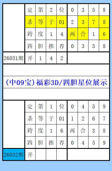 福彩3D第032期综合图文(中09宝),单选推荐,视频上期中金胆1和值7