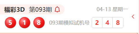 福彩3D第093期开奖结果为:518