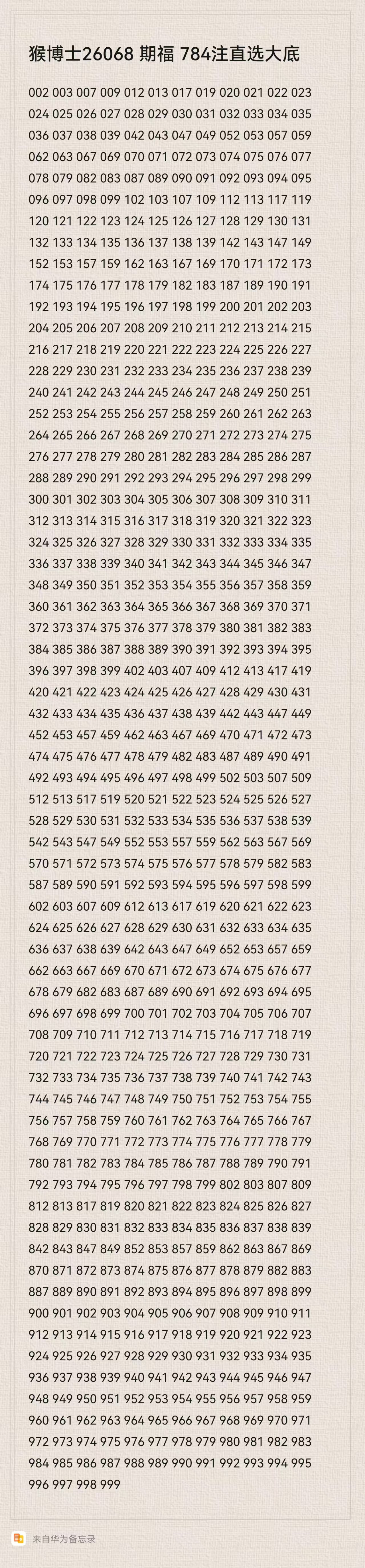 猴博士26068期福784注直选大底:(可以当母底用,然后进行缩水)