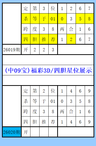 福彩3D第020期综合图文(中09宝),四胆推荐