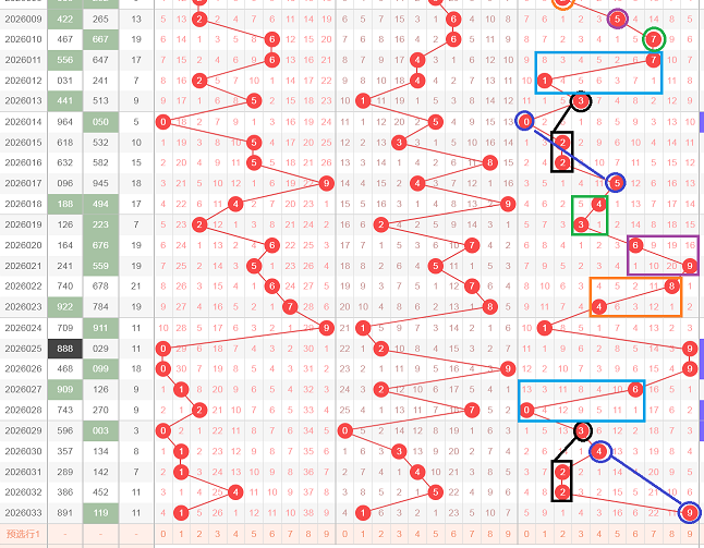 这是一张近期关注的走势分析图,黑颜色322是坐标,青颜色第一次是71,两码差6,7和1是由大到小的排列方式,第二次青颜色开出了6和0,6和0也是两码差6,6和0也是由大到小的排列方式,第一次蓝颜色线条是05,05是对应数,0和5是由小到大的排列方式,第二次蓝颜色线条是4和9,4和9也是对应数,4和9也是同样由小到大的排列方式,第一次绿颜色7,在下面用绿颜色框3加4解开,第二次紫颜色5,在下面用紫颜色6加9解开,第三次橙颜色2,在下面用橙颜色框解开,文字表达不太清楚,大家可以观看上面的视频