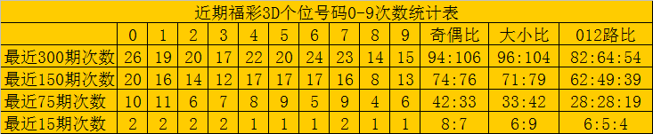 个位分析:最近300期奖号由冷到热表现为:324,2926,128,4829,6733,0536次,该位号码奇偶比为147:153,大小比为157:143012路比为119:90:91