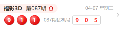 福彩3D第087期开奖结果为:911