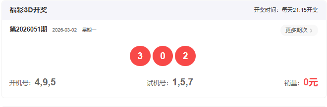 3D上期开奖回顾:
