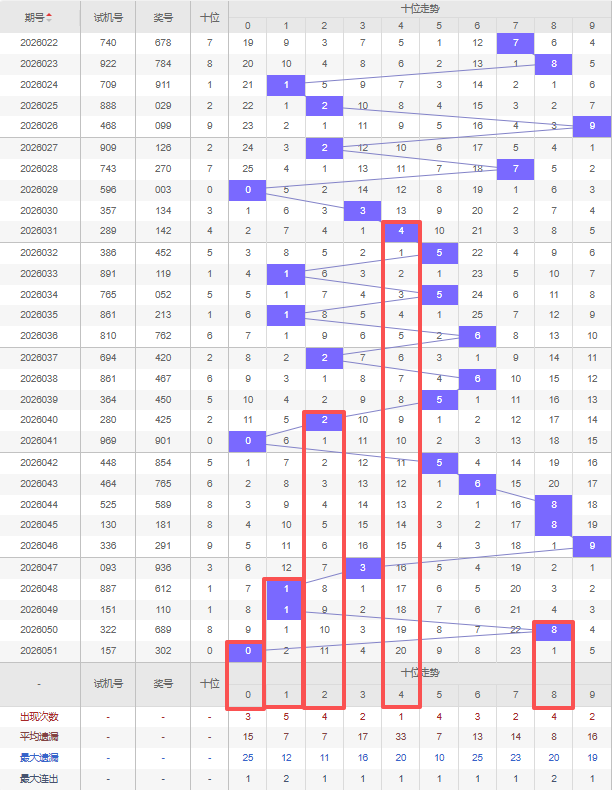 上期十位:0,近10期十位出号 :5 6 8 8 9 3 1 1 8 0,最近10期大小变化分别:大大大大大小小小大小,奇偶变化分别:奇偶偶偶奇奇奇奇偶偶,质合变化分别:质合合合合质质质合合,根据近10期的规律本期综上所述十位出号推荐5个号码:0 1 2 4 8。