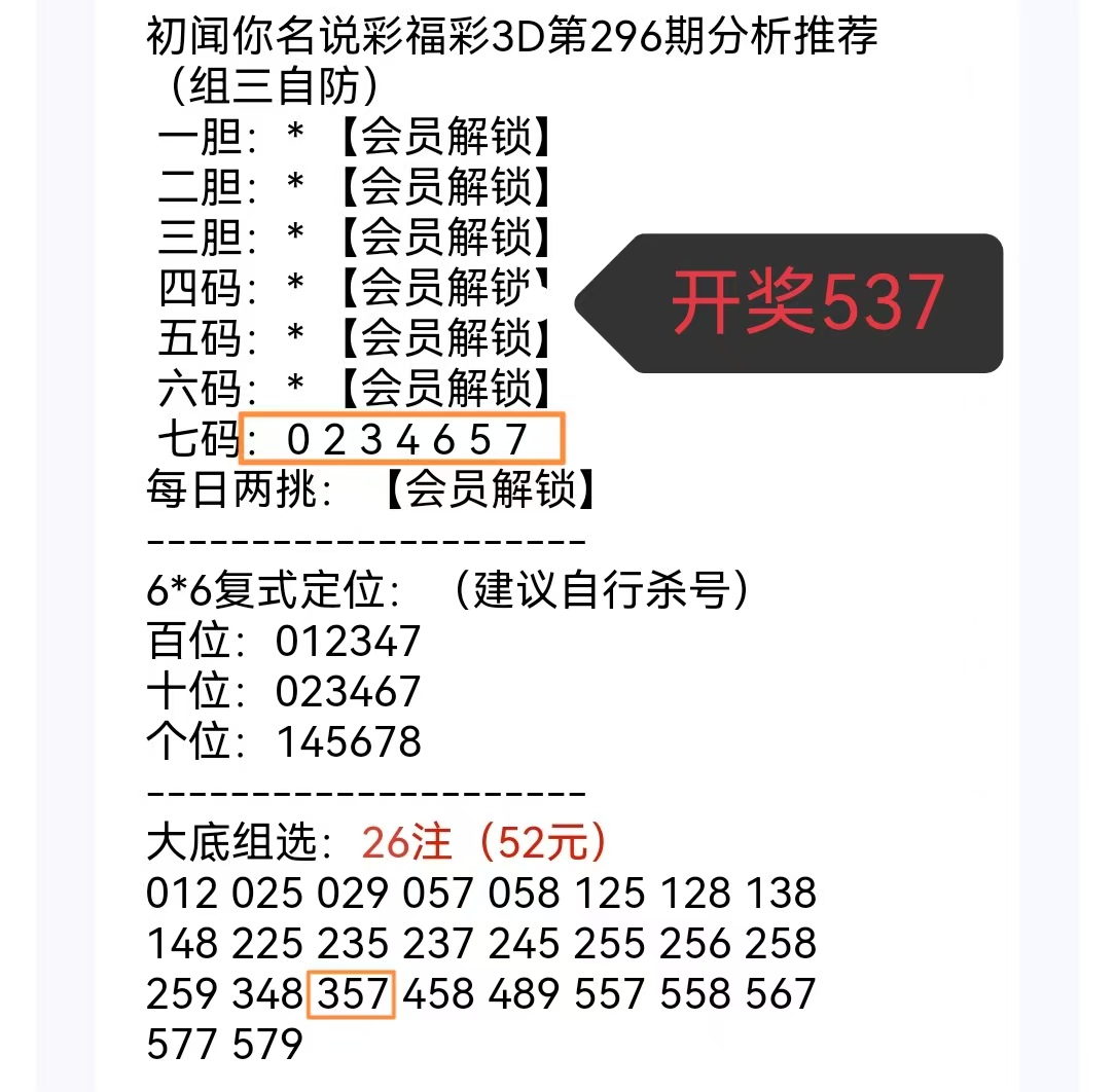 初闻你名说彩福彩3D第297期分析推荐 (组三自防)