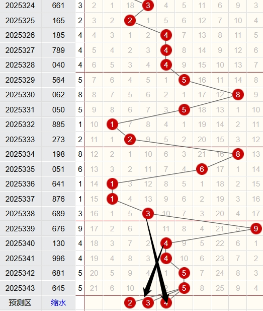 上期跨度为2,近5期跨度开出情况:第25338期开出3,属于奇数,0路号码,木属性;第25339期开出1,属于奇数,1路号码,水属性;第25341期开出3,属于奇数,0路号码,木属性;第25342期开出7,属于奇数,1路号码,火属性;第25343期开出2,属于偶数,2路号码,火属性;
