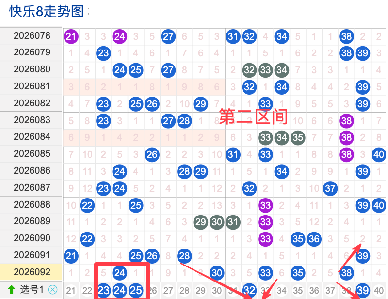 上期二区开出5个奖号(24.30.33.35.38)上期回顾二区开出5个奖号二区间在上期落位同比前期的话呈现了一个不变落位趋势,先来看本期号码23整体活跃度较热,在近 30 期里有一定的间歇性出现,不是每期都开,近期整体走势还是很稳定。号码25近期热度较温热,间隔性整体比较温热,说明其在当前阶段活跃度较温热注意防守。号码32近期活跃度较热有一定的间歇性近期整体走势相对还是很稳定有特别明显的冷热趋势变化,号码39近30期内活跃度较热,没有明显的连续出现形态走势,整体表现比较热。