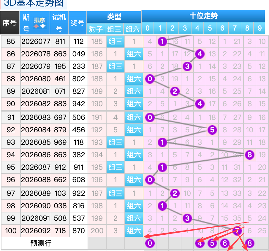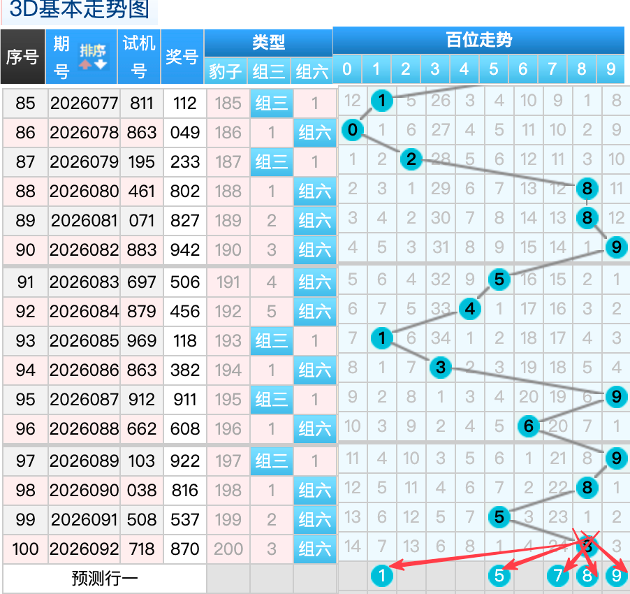 上期3D十位开出的奖号7号,上期在十位上7号球这个号码是一个冷号回补码的落位点,本期来看0号在十位上要注意这个号码是有机会继续走出热号7跨落位的趋势这里的号码回补形态注意防守就好,再来8号球这个点位注意防守走出分边小周期号码的落位趋势。5号球这个小周期号的落位回补要注意参考。6号球要注意走出顺位号码的落位回补。