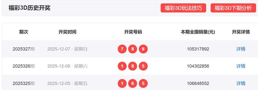 福彩3D上一期,开奖号码789,形态为组六,奇偶比为2:1,012路数值表现为120,和值24,和尾4,跨度2。