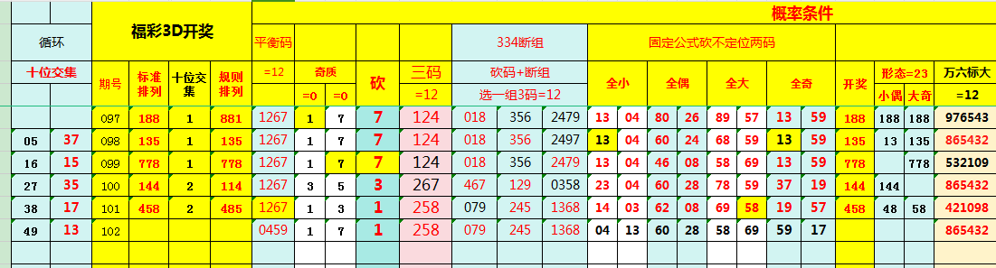 福彩3D第102期“标准排列”分析