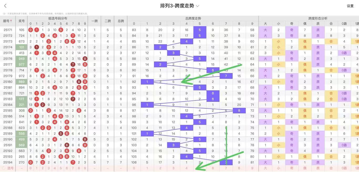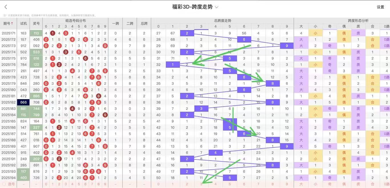 2025195期福彩3D跨度走势图如下: