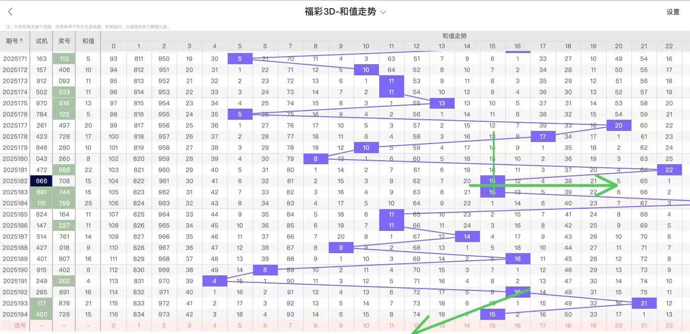 2025195期福彩3D和值走势图如下: