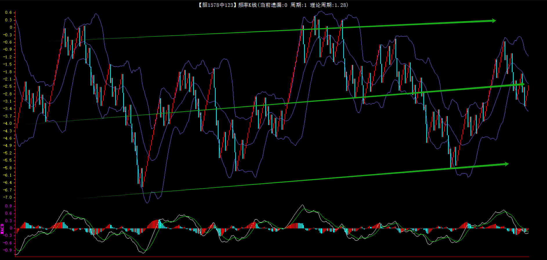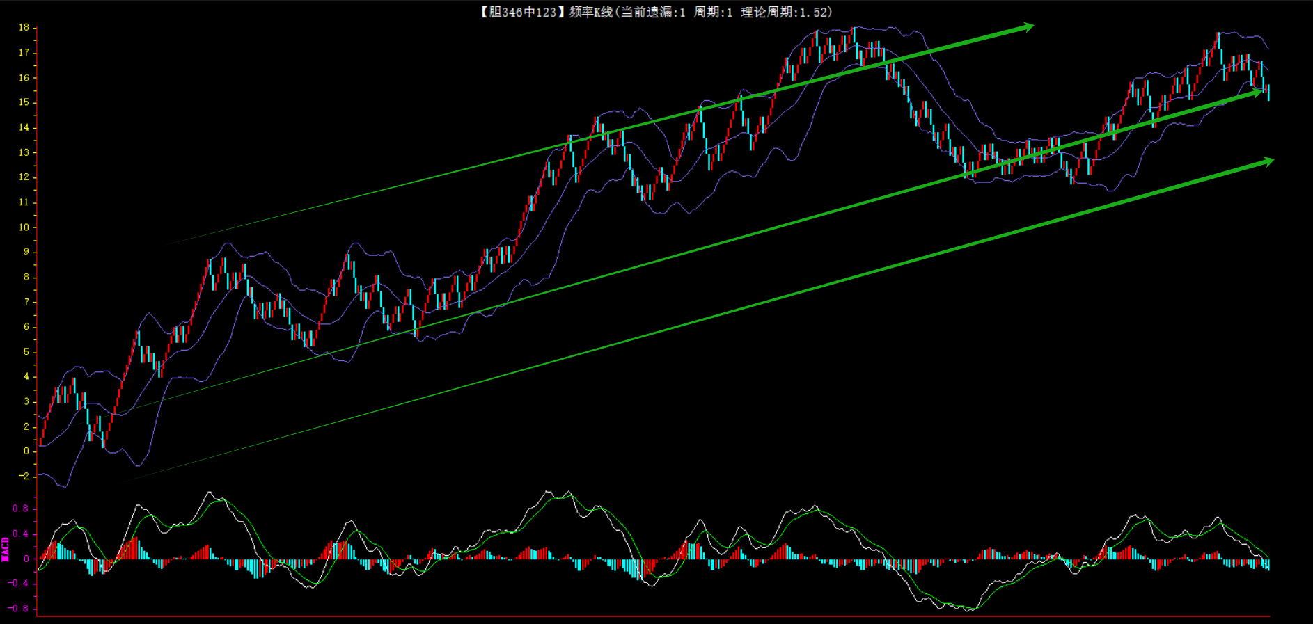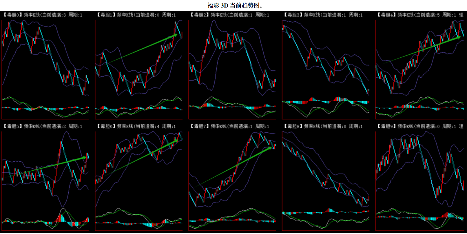 整体趋势上行,上边沿线趋势向上,下边沿趋势也是向上,节点震荡,当前遗漏1期,本期关注。