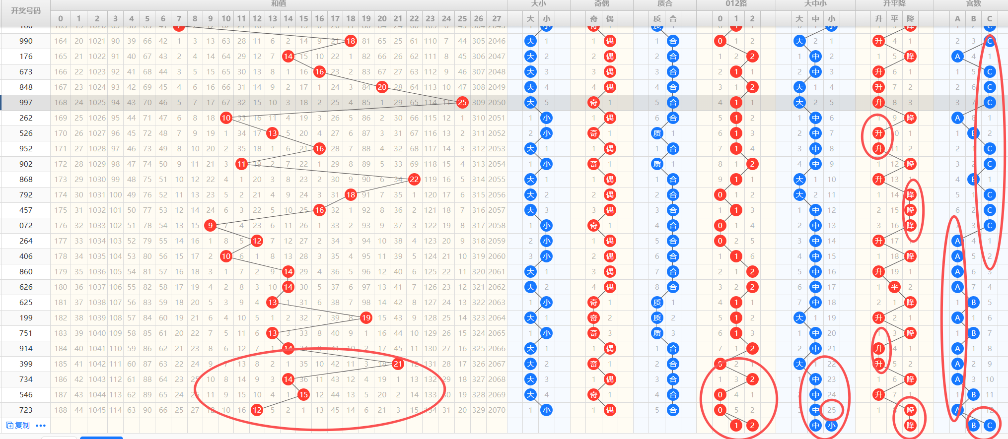 结合上述条件来看本期的和值可选:2/4/7/8/11/13/16/17/20/22/25/26.重点:2/4/8/11防13