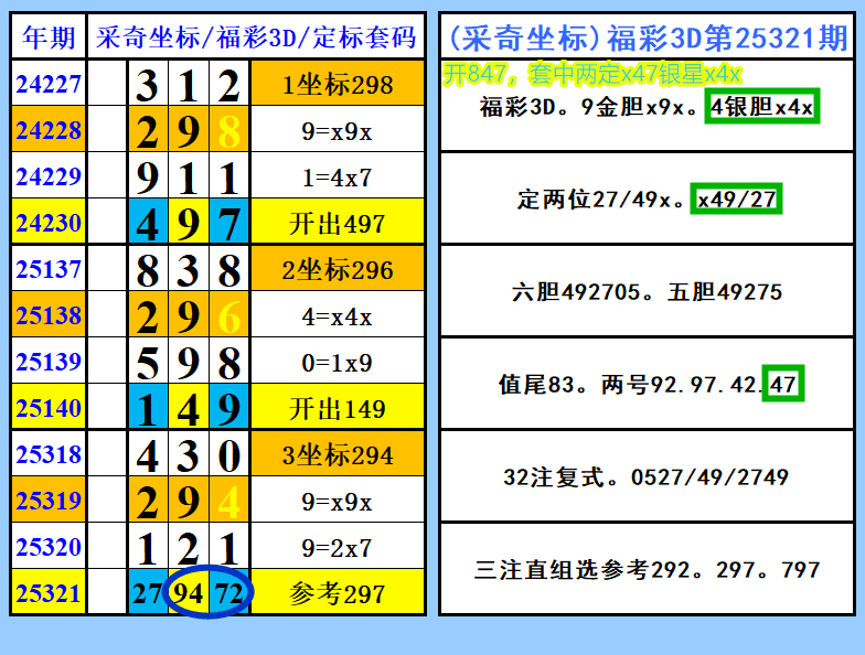 (采奇坐标)视频经典回顾,福彩3D第321期,套中两定x47银星x4x
