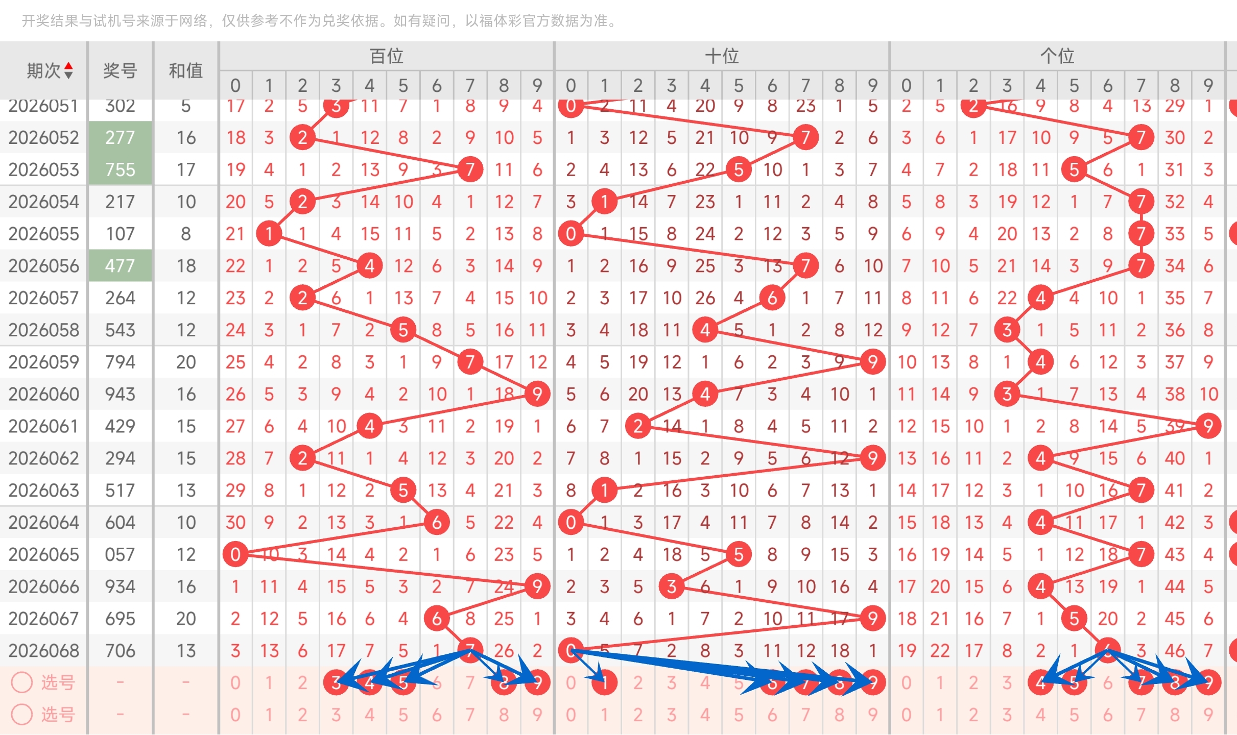 第2026053期福彩3D分析文章,5码定位命中755,二胆命中5。