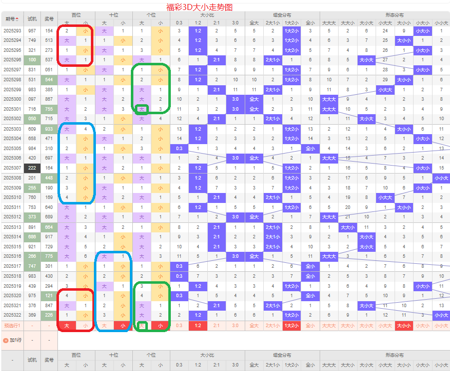 上期大小比为1:2,两小的号码组合方式,从近五期出现情况看,大号码出现4次,小号码出现11次,大号码出现较少,本期侧重两小的号码组合,本期百位侧重大号码,十位侧重小号码,个位要侧重看小,侧重大小小或者大小大的号码组合,根据大小做五码定位56789/01234/01234或56789/01234/56789