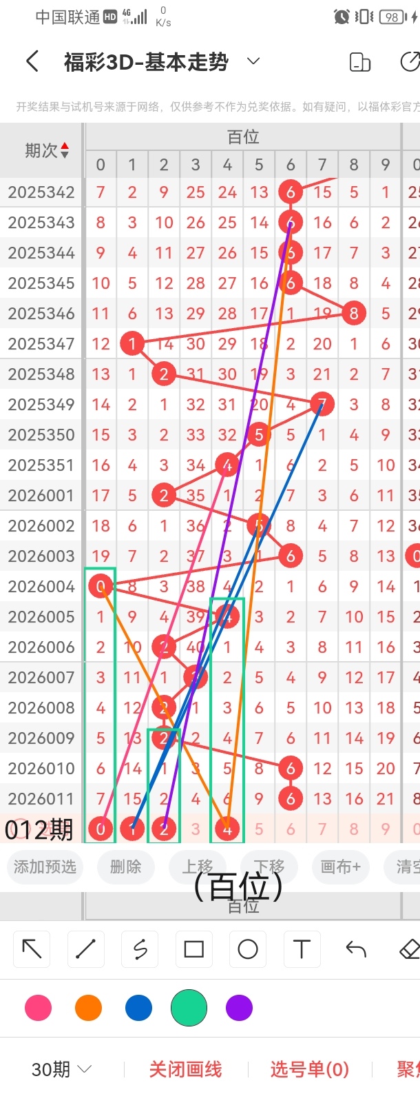 通过以上对上期的简单回顾,下面进入2026012期(下面简称本期)的选号分析: