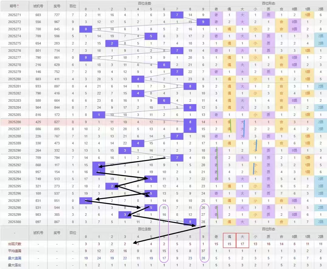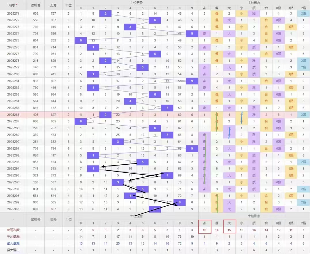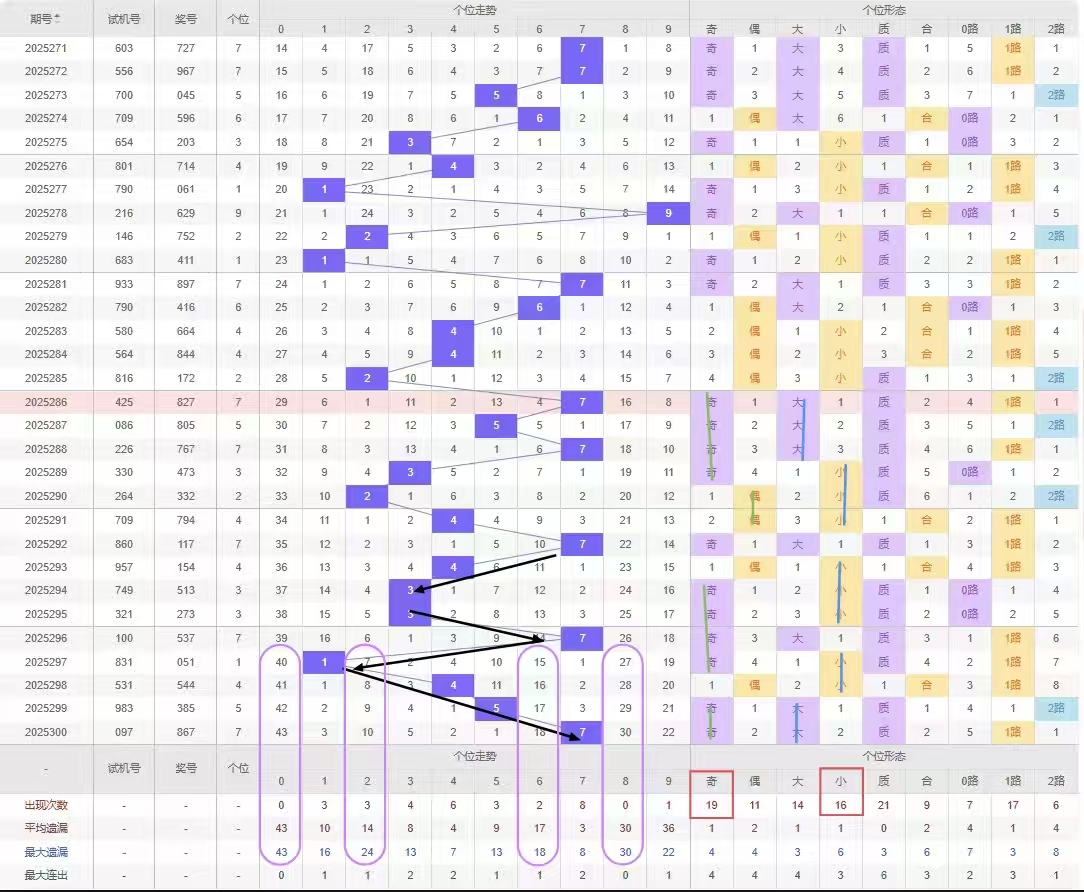 福彩3D第2025301期个位先分析奇数偶数,近15期开出奇数号11期开出偶数号4期,开出奇数号的概率是开出偶数号概率的2倍多,上两期开出奇数号那么本期继续开出奇数号的概率较大建议选择遗漏期数较多的奇数号开出。杀号定在所有偶数号,但偶数号0号、2号、6号、8号都已经遗漏了10期以上建议开出防冷号开出。