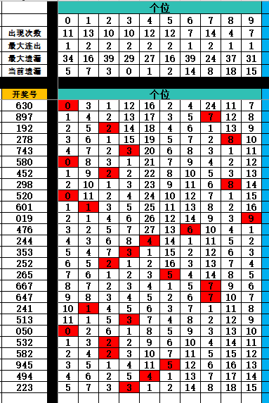 3:个位排序(近100期)开奖号个位0-9个数排序为7145023698 *首选*>>>71450 *次选*>>>23698