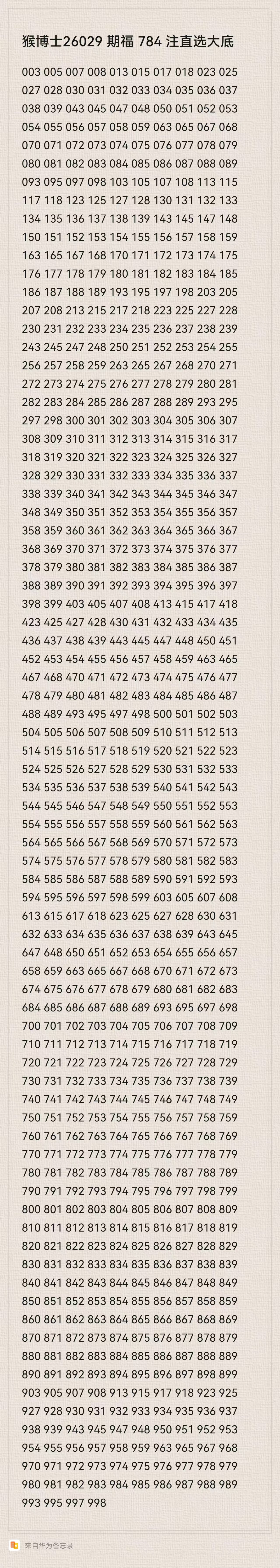 猴博士26029期福784注直选大底:(可以当母底用,然后进行缩水)
