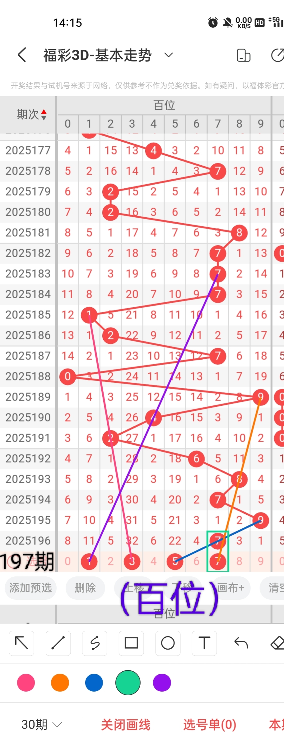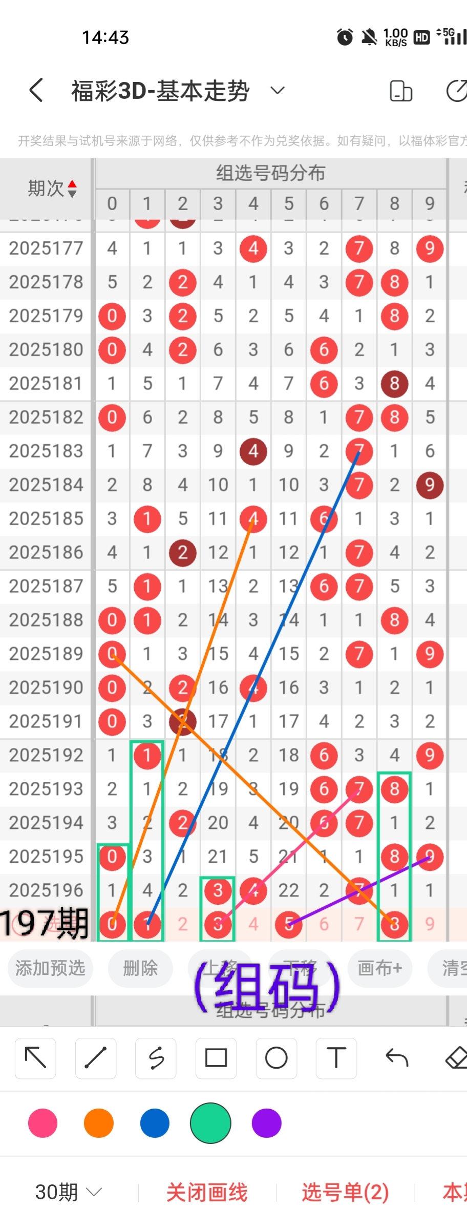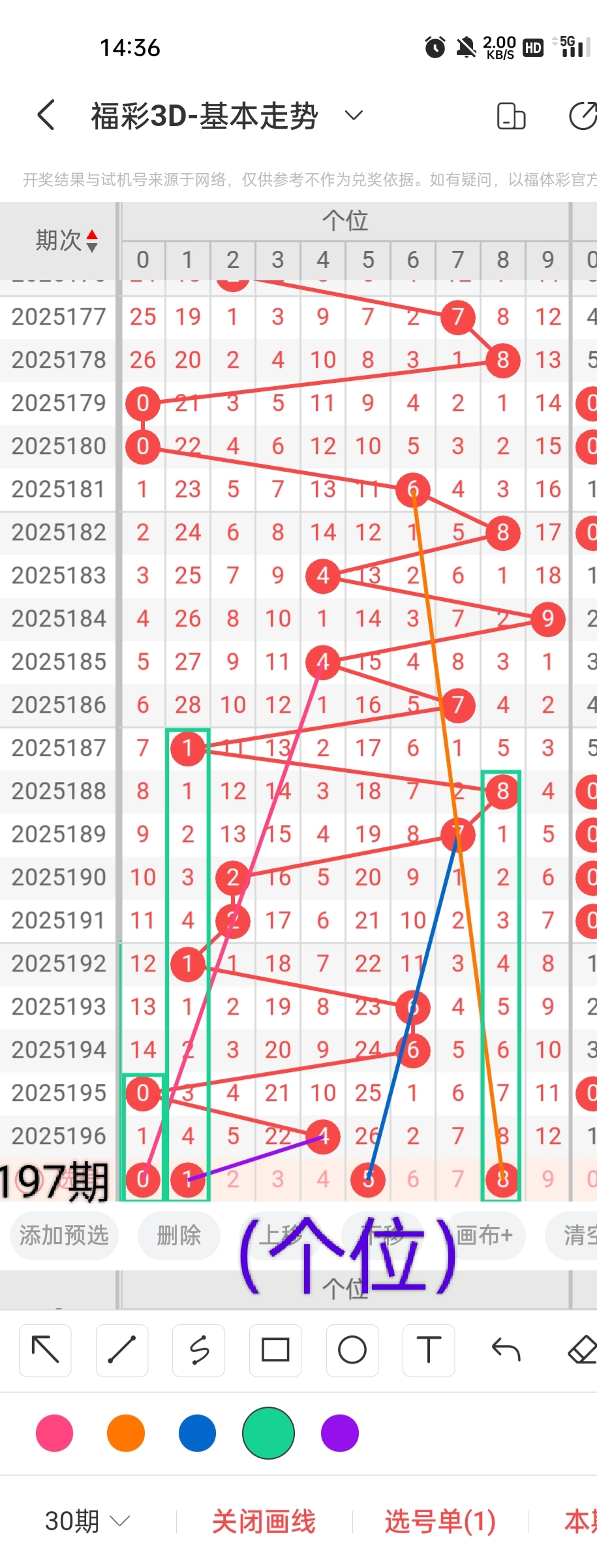 通过以上对上期的简单回顾,下面进入2025197期(下面简称本期)的选号分析: