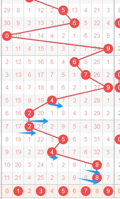 上图是福彩3D开奖号码走势分布图,我标注出来的数字都是奇数数字,标注出来的蓝色箭头都是偶数数字,上期又开出了两个偶数数字一个奇数数字,最近偶数数字出现的多,那么本期奇数数字13579至少可以关注出一个或者两个,防出3个。