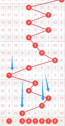 上图是福彩3D从左到右定位第三位数字,我标注出来的数字都是遗漏周期小的数字,标注出来的蓝色箭头都是遗漏周期,上期开出数字3遗漏周期是15期,根据这些遗漏周期分析,本期第三位数字可以关注出遗漏周期小的数字1345678,个人最看好数字1457。