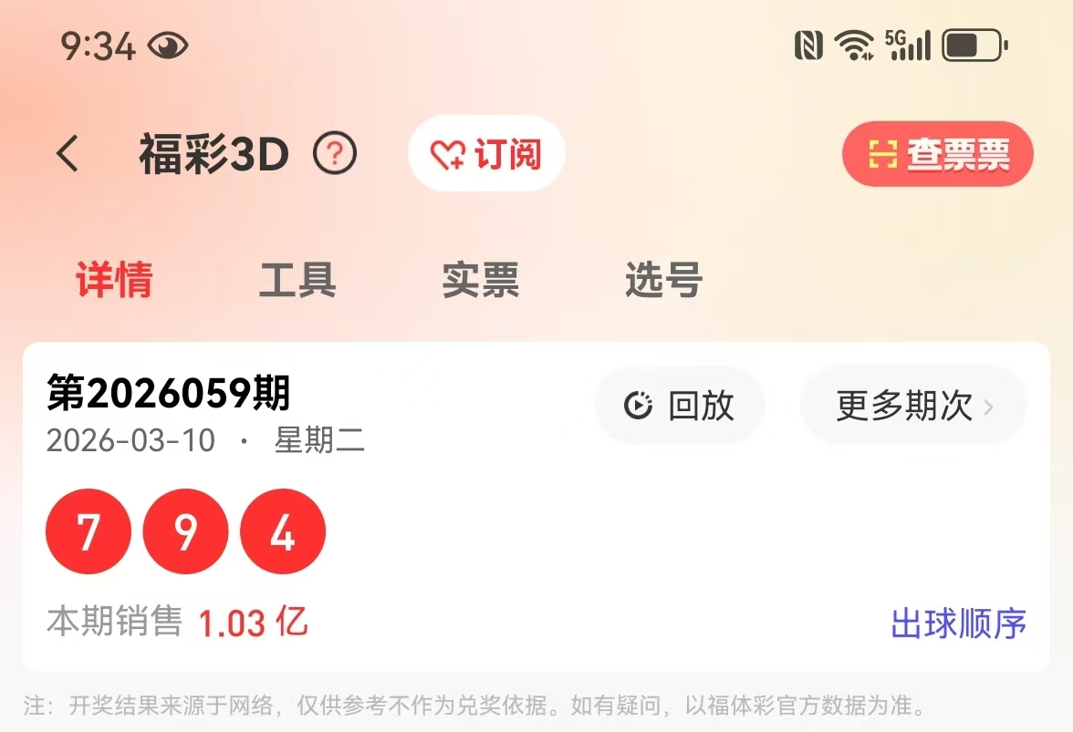 福彩3D2026第059期回顾: