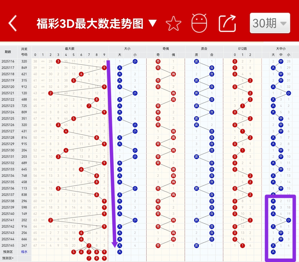 2、最大数:奖号中最大的数字。比如25064期开奖号928,最大数为9。