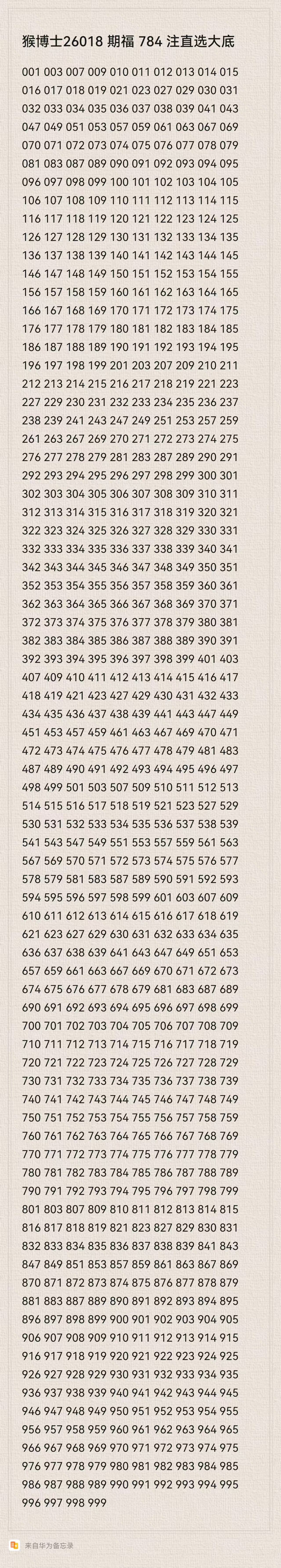 猴博士26018期福164注组选大底:(可以当母底用,然后进行缩水)