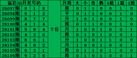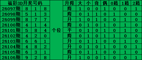 综上所述,福彩3D第2026107期号码推荐: