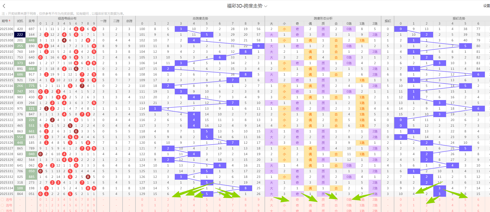 今天福彩3D第2025336期的趋势判断为:方向主看组六防组三;跨度回落明显;和值回升概率较大;