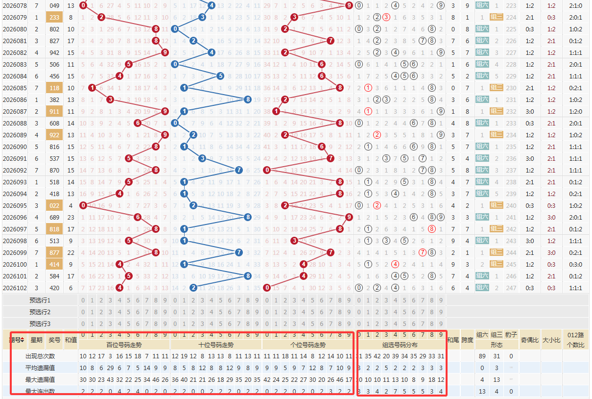 第三步:取近百期数据杀跨度/杀和值尾判