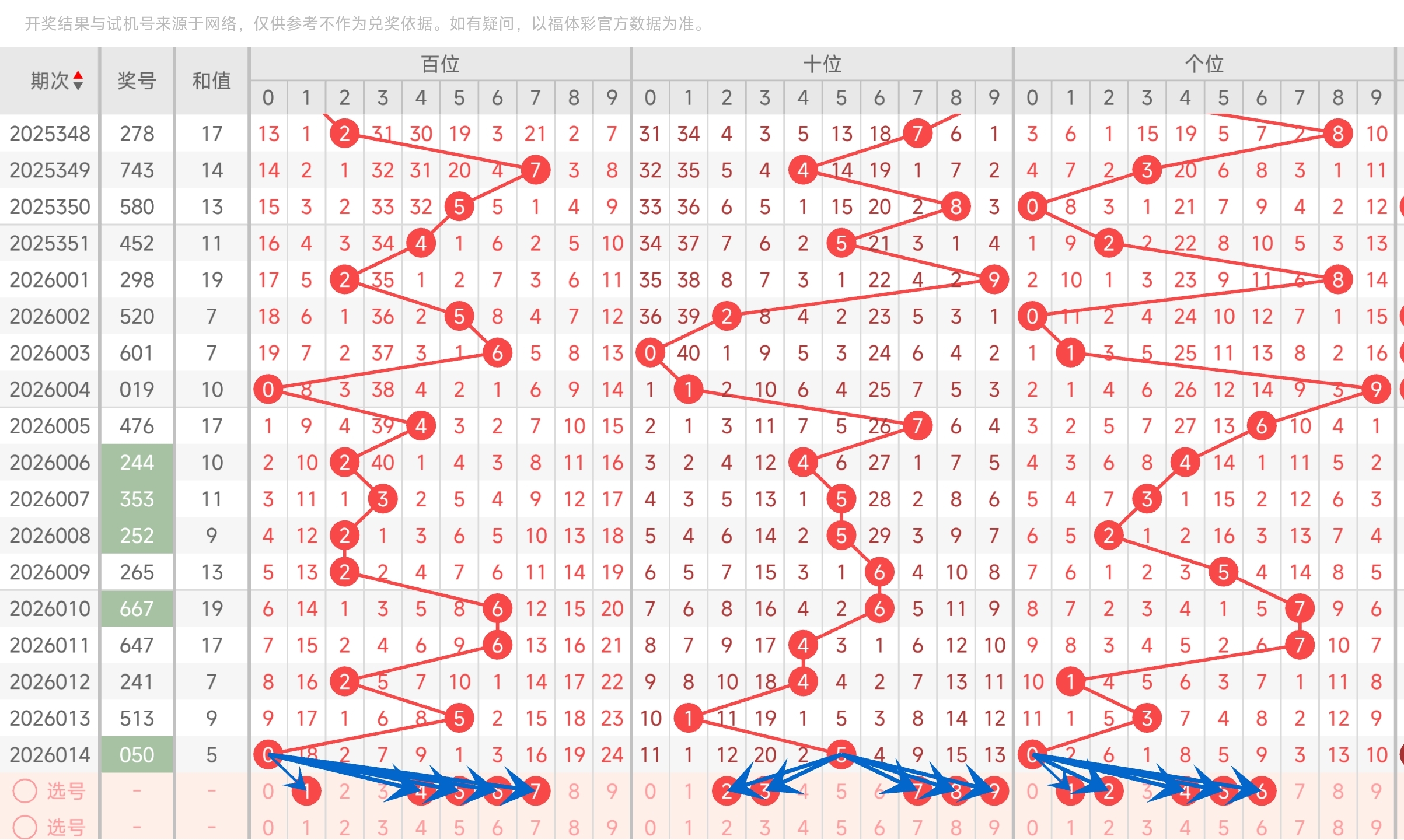 第2026003期福彩3D分析文章,5码定位命中601。