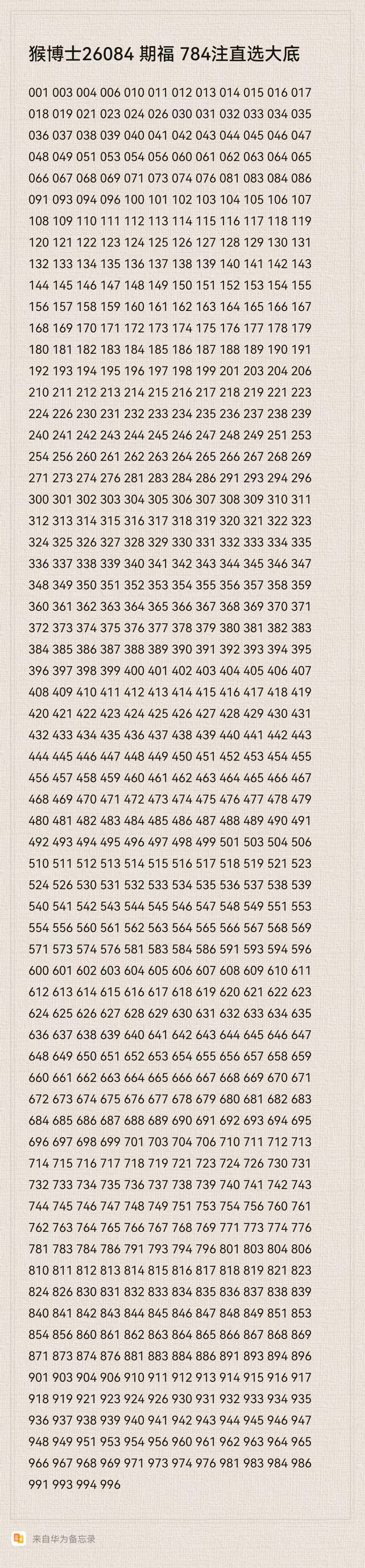 猴博士26084期福784注直选大底:(可以当母底用,然后进行缩水)