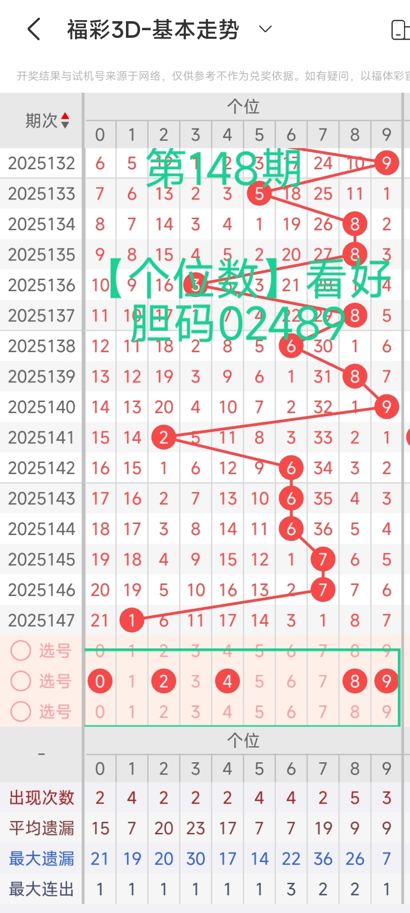 综合以上各个方面的详细分析,并结合我个人的判断,为大家带来福彩3D第25148期的精心推荐,希望能助力大家选号: