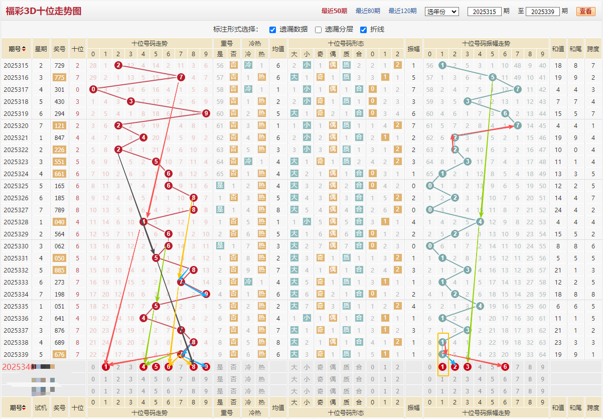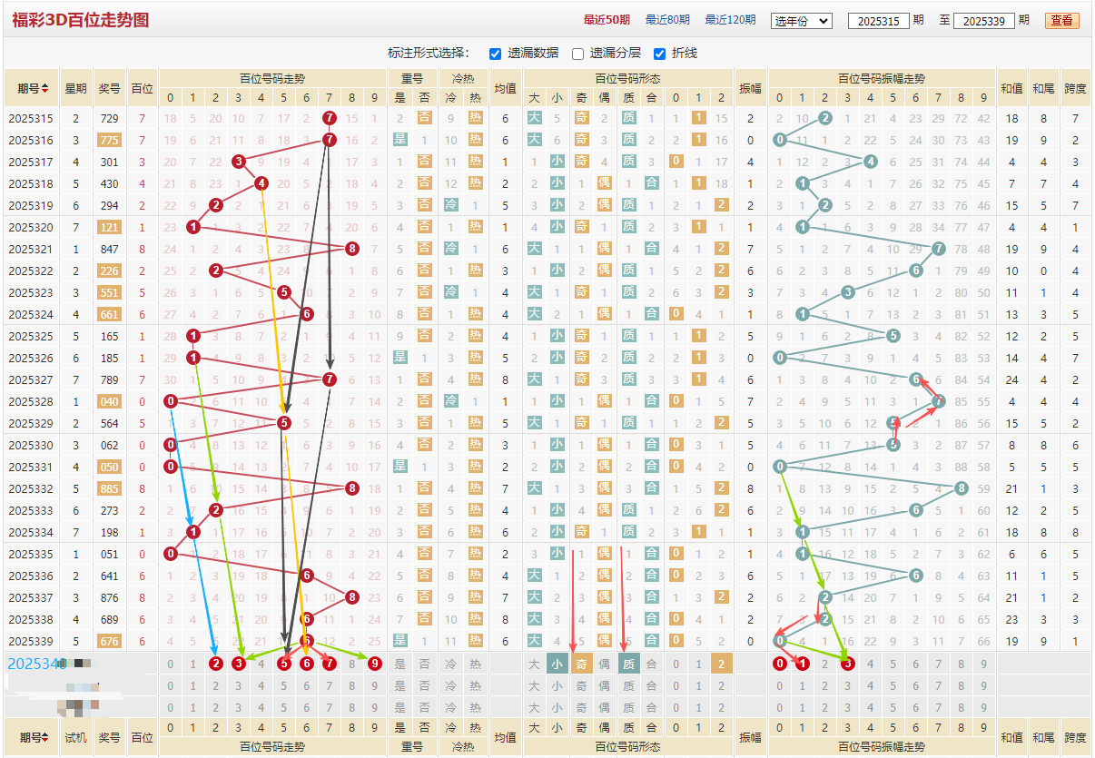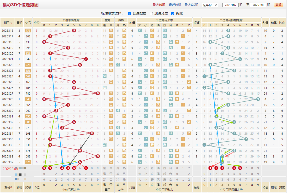 百位近期走势:1/1/7/0/5/0/0/8/2/1/0/6/8/6/6,连续出五期合数,本期则重点看质数,合数太热小防,见上图振幅绿色线0/1/2/3等隔下来对应数字39,红色线5576和2201折线走势等隔下来对应数字57,连续开出5期偶数合数,本期重点参考质数奇数,左边黄色线4/5/6,绿色线1/2/3,蓝色线0/1/2,都是等隔下来。黑色7575菱形对称开出,综合上述百位推荐:235679