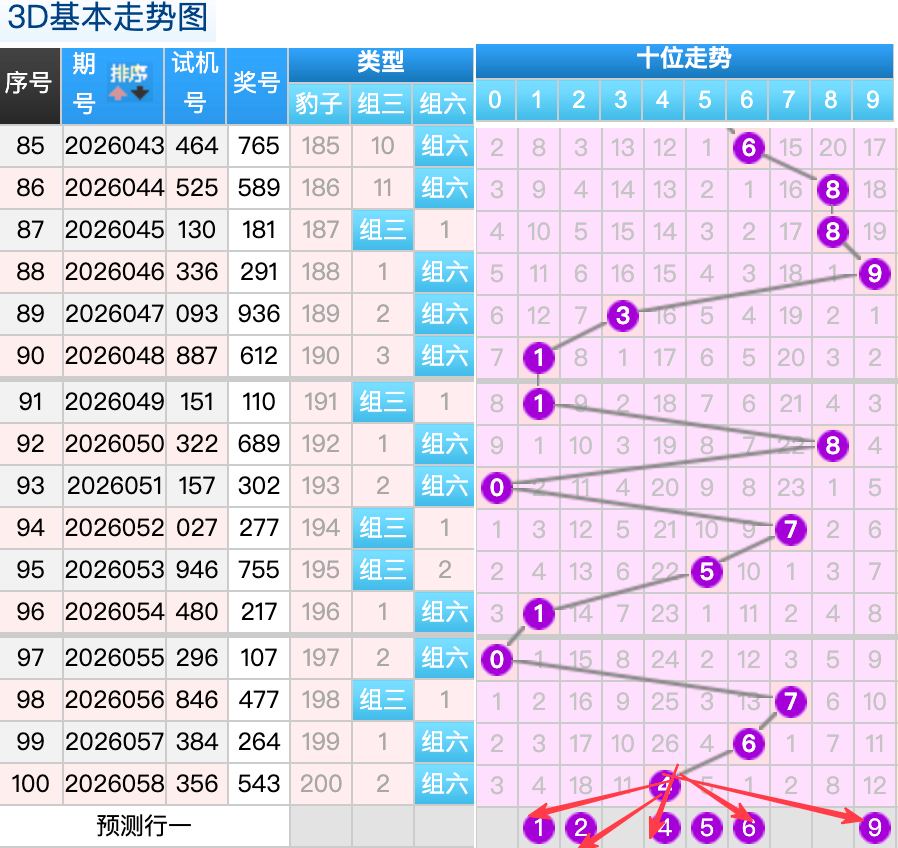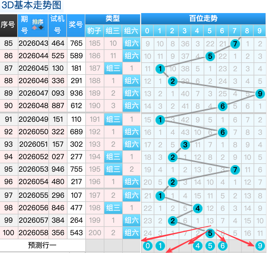 3D上期百位开出的5球,这个奖号5是一个冷码回补落位趋势也是一个比较好的符合百位上的落位点,先1号球这里还是有机会继续走出一个小号码小周期的回补趋势还是4跨落位走势,还有一个就是0号球这里的是分边的落位形态的概率在这里的机会还是很好的要注意防守,然后9号球这里要注意是一个大码冷回补落位趋势注意防守,6号球在百位上要注意可能有机会走出热码回补的落位码 。