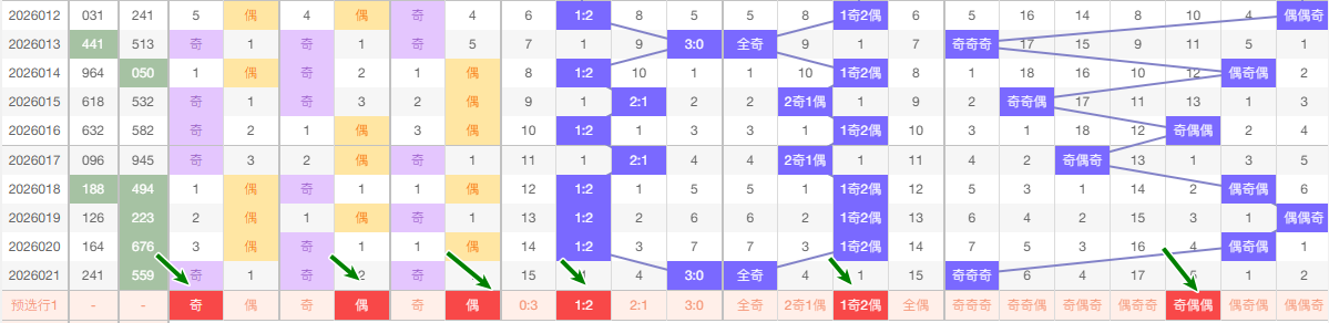 从本期的开机号来看 类型形态: 组六 大小:大小小 奇偶:偶奇奇 012路:210 跨度:7 和值:12