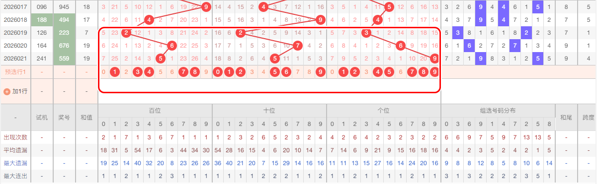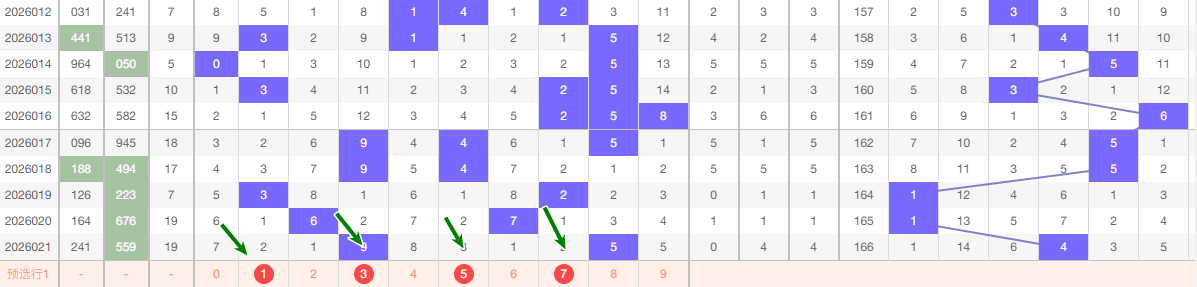 上期十位开出5,本区与上期的跨度为2,本期我们重点关注059,本期十位推荐关注:012569
